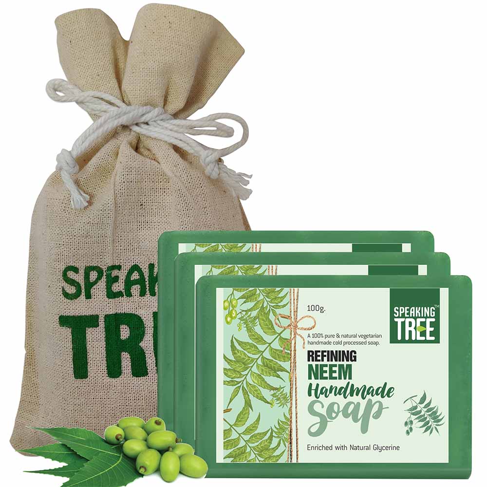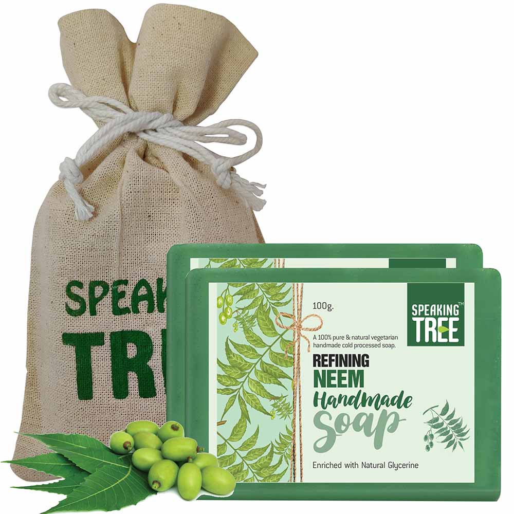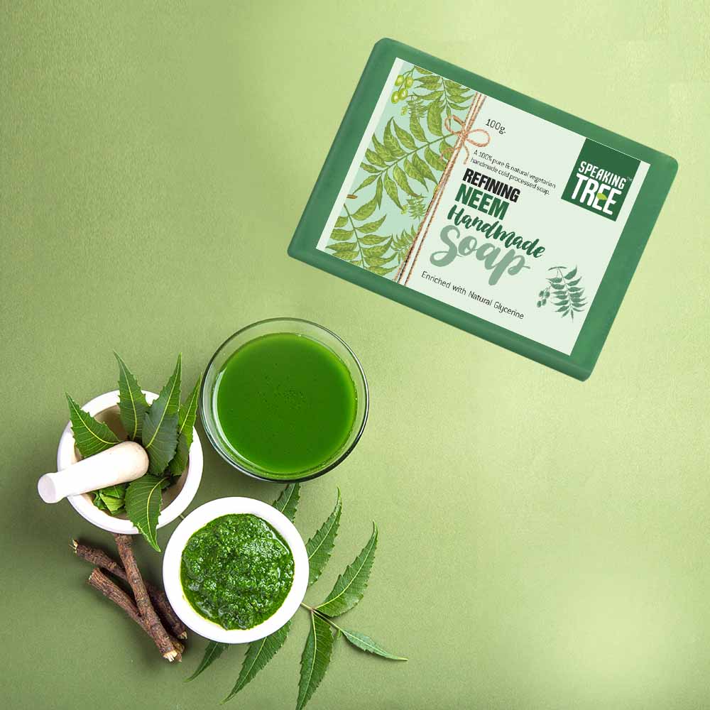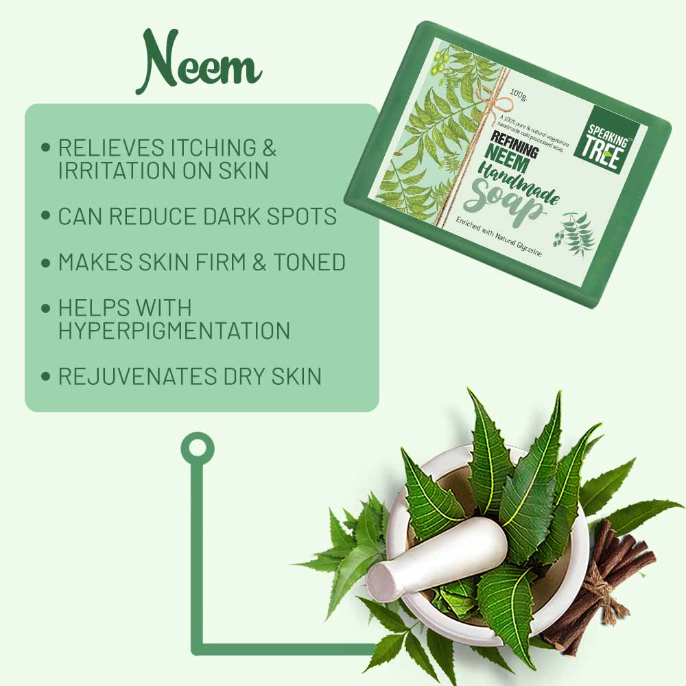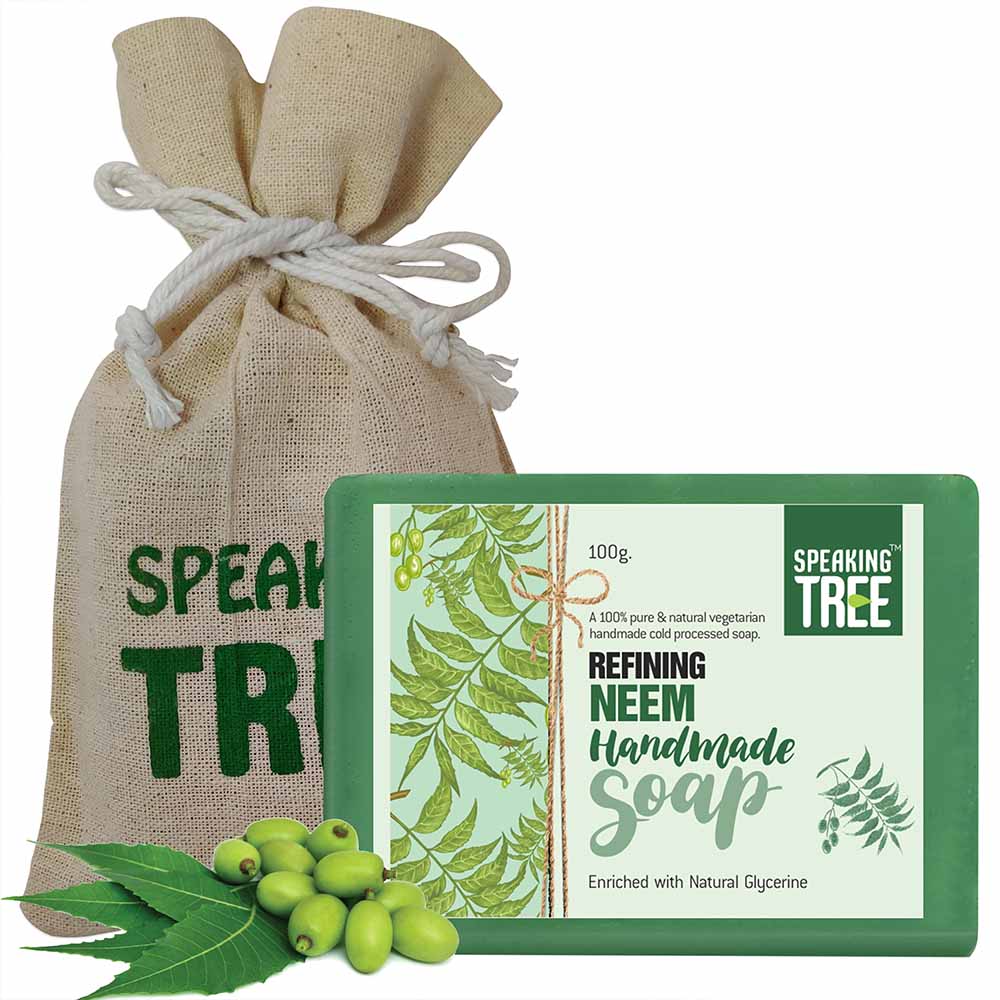 - GREAT MOISTURIZER: Neem leaves are a great source of fatty acids, vitamins and minerals, Speaking Tree neem soap is hence packed with skin beneficial nutrients known to be nourishing and can make dry skin moisturized and visibly plump. Neem soap penetrates deep into the skin and helps restore lost moisture and reduce flakiness and extreme dryness. It regulates oils at pores and maintains moisture at optimal amounts, keeping skin smooth and glowing.