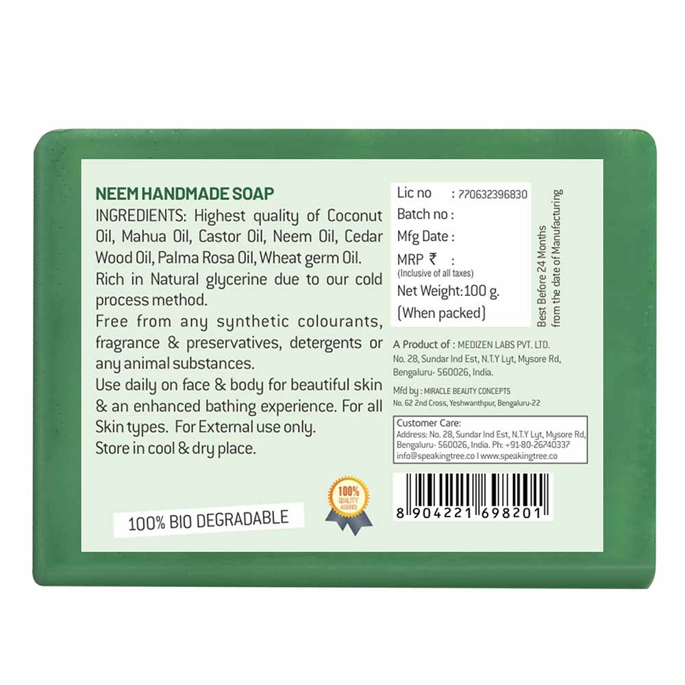 - SUPERNATURAL CLEANSER: Neem is a power herb and a natural beauty ingredient that has bioactive compounds which help in removing toxins, and infections-causing microbes accumulated beneath the skin’s surface. It unclogs skin pores, helps in clearing excess oil, dirt and to get rid of skin woe. Neem soap works as a natural alternative to heal skin tissue from within and result in healthier and smoother skin.