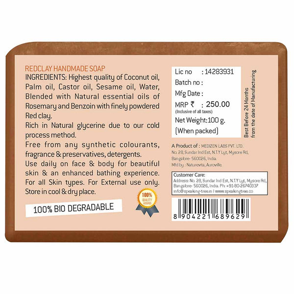 - 100% NATURAL & HANDMADE: Speaking Tree Deep Cleansing Red Clay soap is pure, vegetarian, handmade, contains a blend of nature’s best ingredients specially formulated through cold processed method to retain the quality and effectiveness of the natural ingredients. It is free of dyes, sulfates, chemical, preservatives, alcohol, foaming agents, synthetic colour and fragrance.
