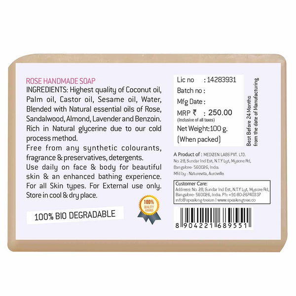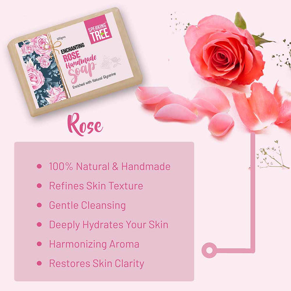 - 100% NATURAL & HANDMADE: Pure, natural, Speaking Tree Enchanting Rose handmade soap is carefully handmade with natural rose extracts and high-quality emollient oils crafted with the traditional cold press method. It is free of chemicals, synthetic colour, parabens, sulfates, hardening agent, foaming agent and artificial fragrance.